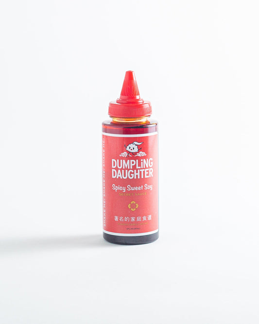 This 50/50 combination of spicy and sweet will change the game. Our aromatic soy sauce is infused with herbal spices and sweetened with brown sugar. When combined with our chili oil, Dumpling Daughter's Spicy Sweet Soy pairs perfectly with dumplings, buns, or noodles! Get creative and try it on anything!