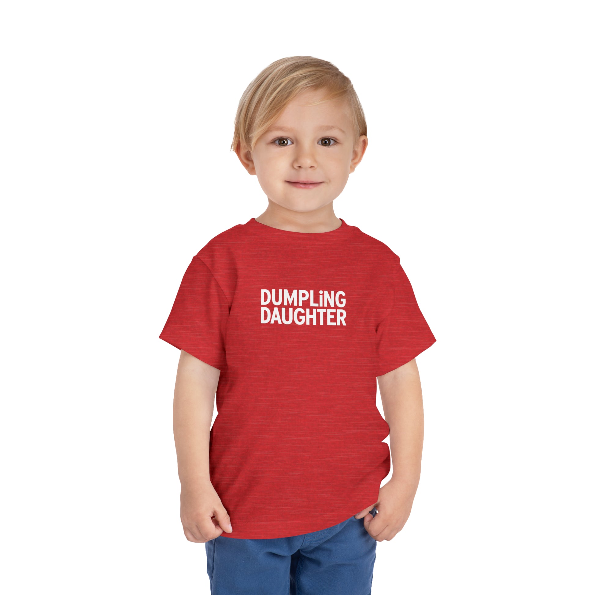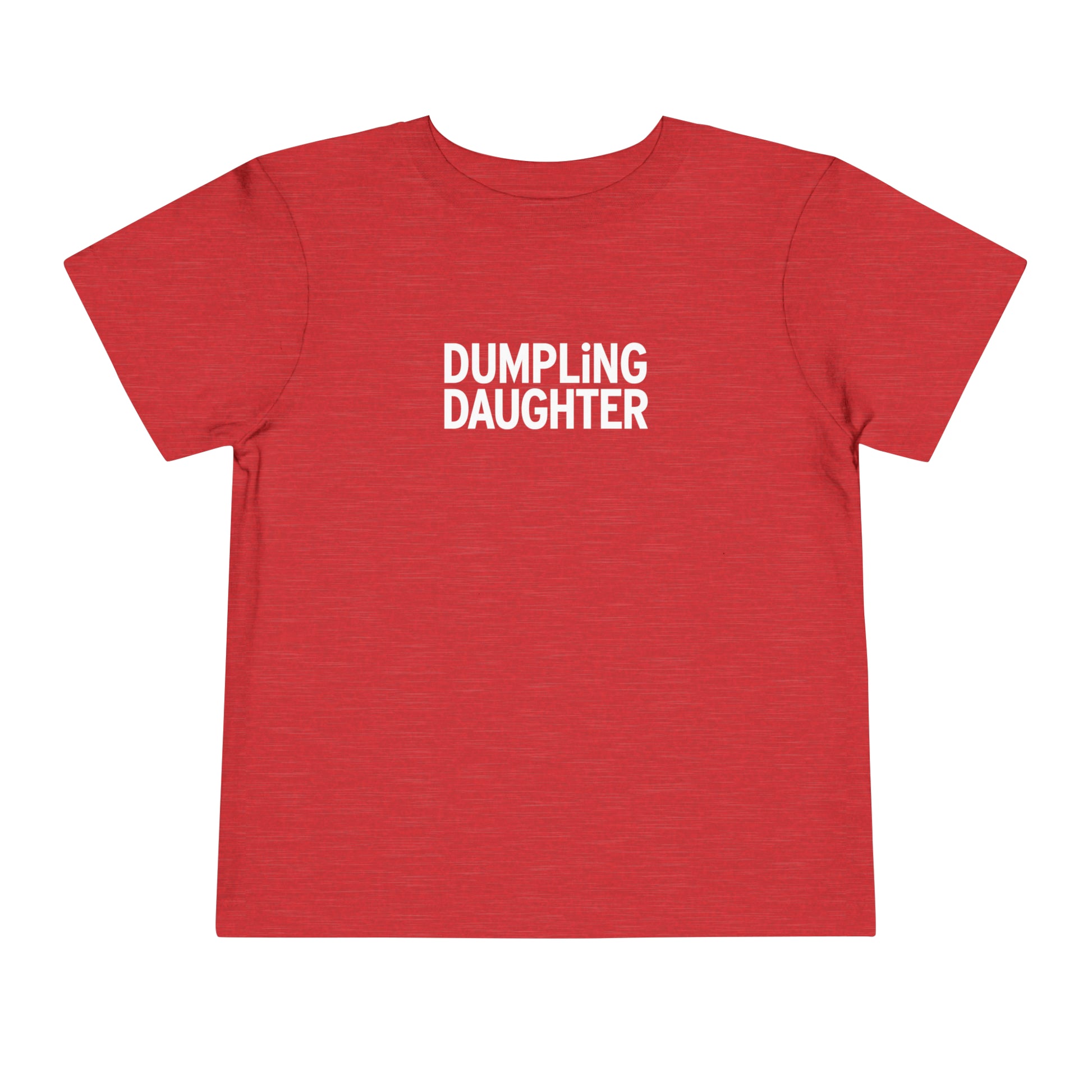 This Dumpling Daughter toddler short sleave tee shirt is perfect for your tiny dumpling lover. The Bella Canvas toddler tee is a 100% Airlume combed and ring-spun cotton jersey with a tear-away label for extra comfort.